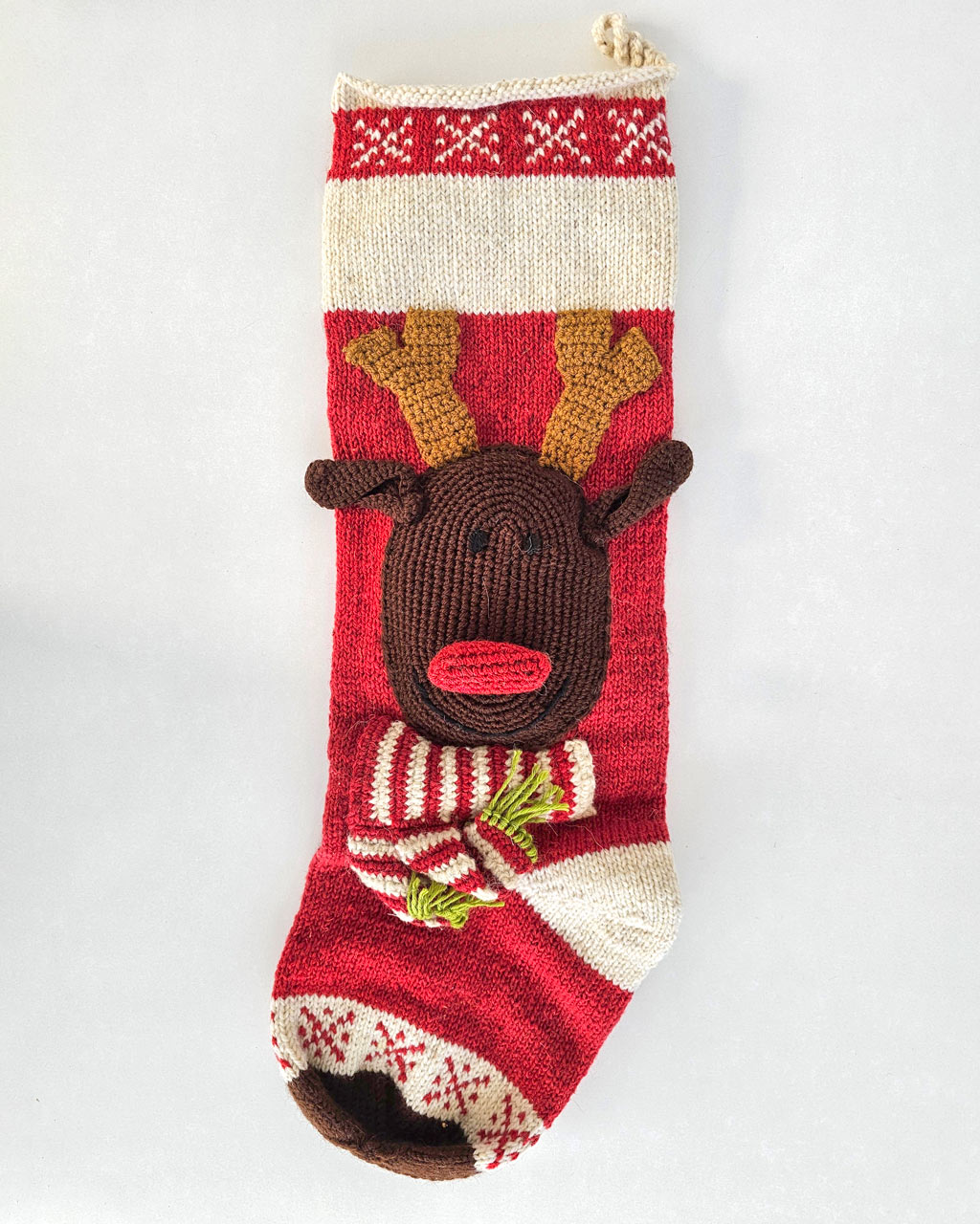 - Handmade Christmas Stocking with Rudolph Reindeer, Size 24in x 7.1in (61cm x 18cm)