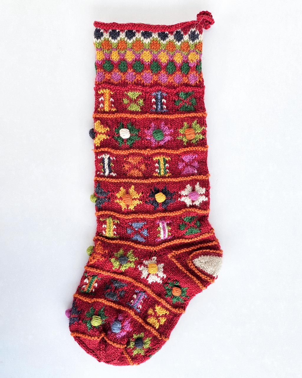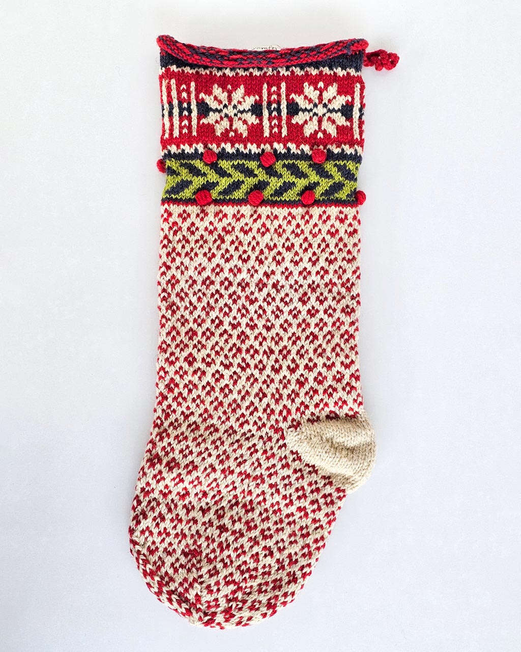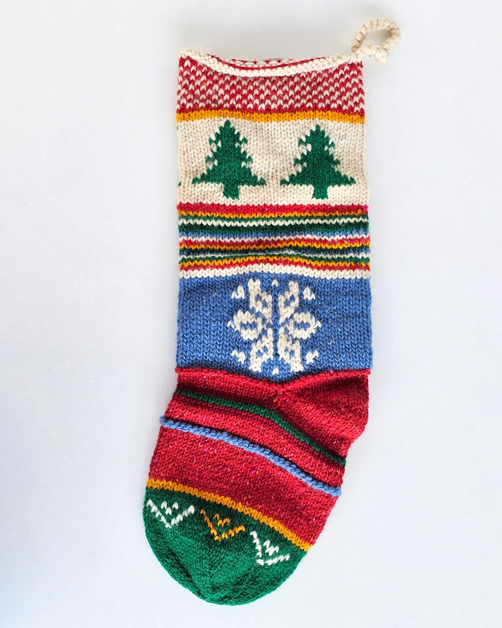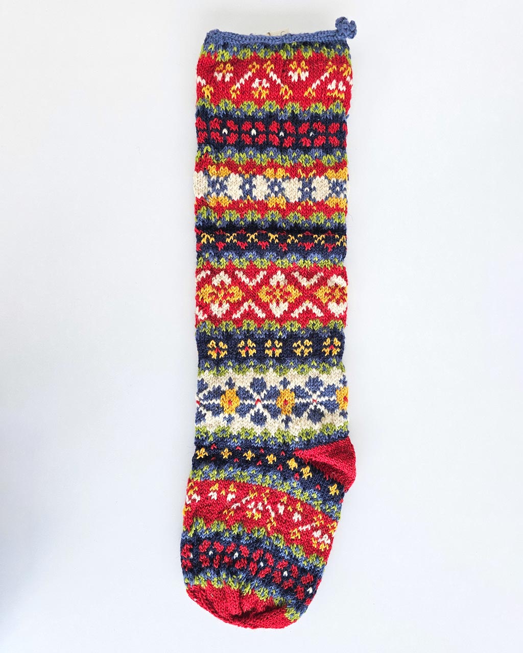 Add warmth and tradition to your holiday decor with this beautiful, fair-trade bundle of 5 Red Handmade Christmas Tree Stockings. Each stocking is hand-knitted by women artisans, combining vibrant colors and traditional motifs that tell a story of skill, care, as well as cultural heritage. These stockings are made with natural fibers and sustainable practices, following Fair Trade standards to ensure ethical production.