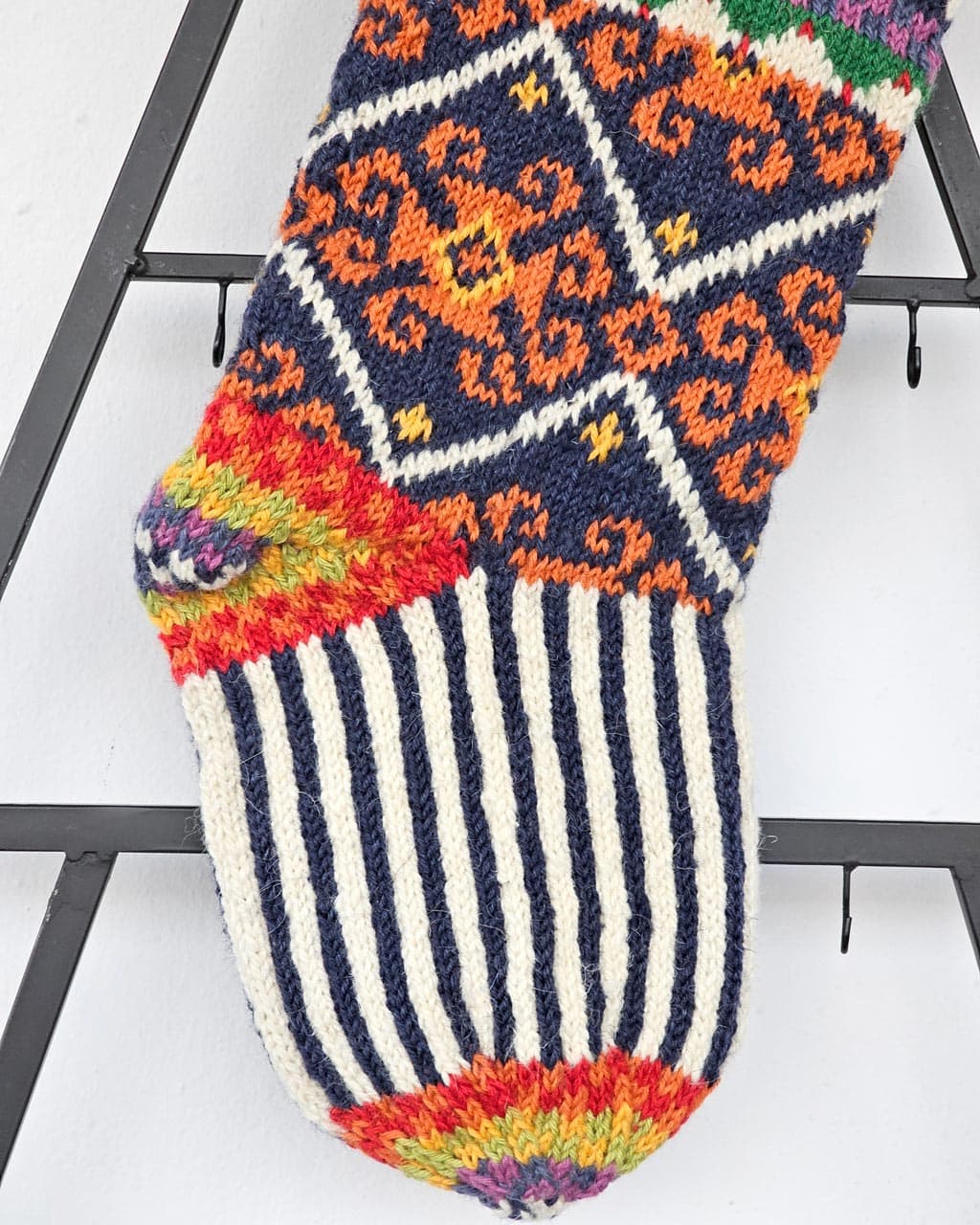 A joyful, Christmas Stocking – Artisans Handmade. Made of sustainable wool. Size: 52 cm ร 18 cm (20.50 in ร 7.1 in).