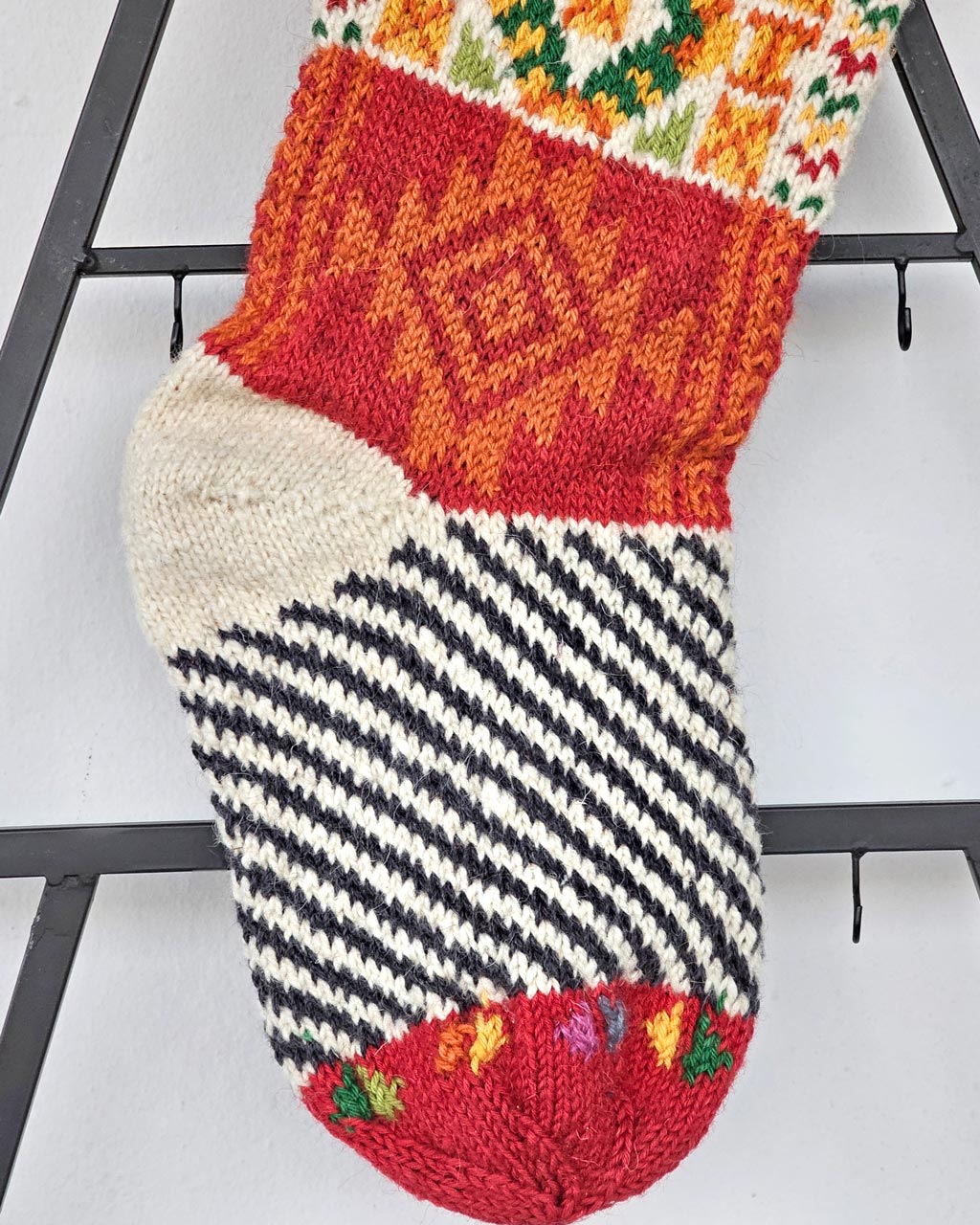 A joyful, Christmas Stocking – Artisans Made. Made of sustainable wool. Size: 51 cm ร 16.5 cm (21 in ร 6.5 in).