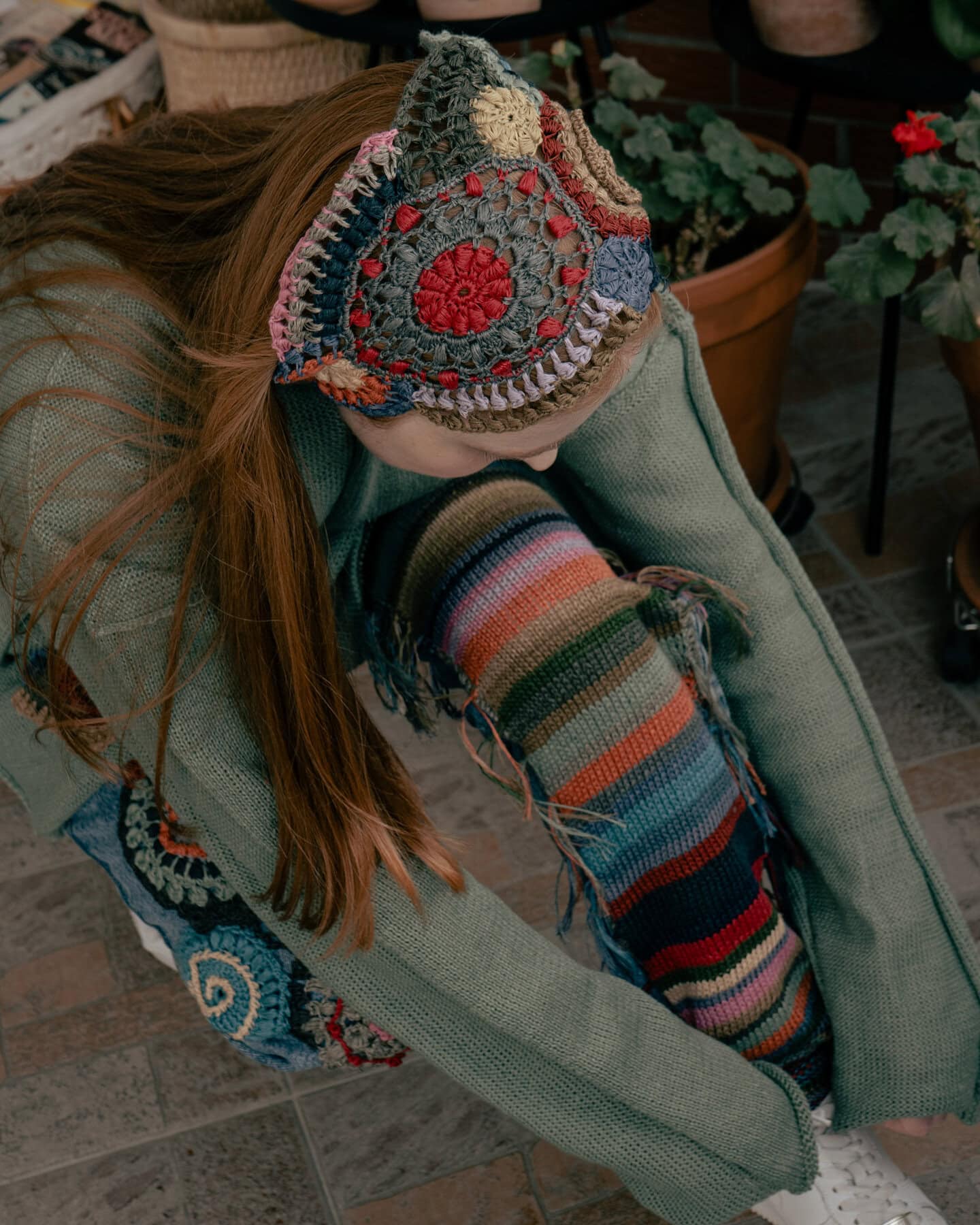 Crocheted headband, in the signature motifs unique to this collection.