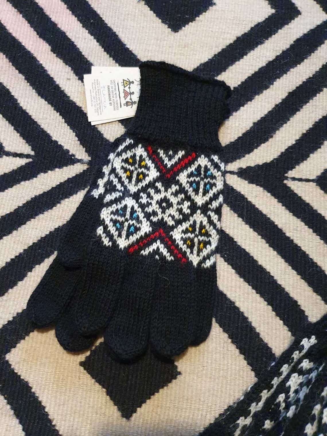Keep your hands protected and add an elegant detail to your cold weather style with a black pair of hand knitted gloves done in jacquard traditional Bosnian pattern. Great for skiing, snowboarding, ice skating or any winter sports or cold weather situation. They are handmade with great care, in a smoke-free, pet-free home. 70% wool and 30% acrylic.
