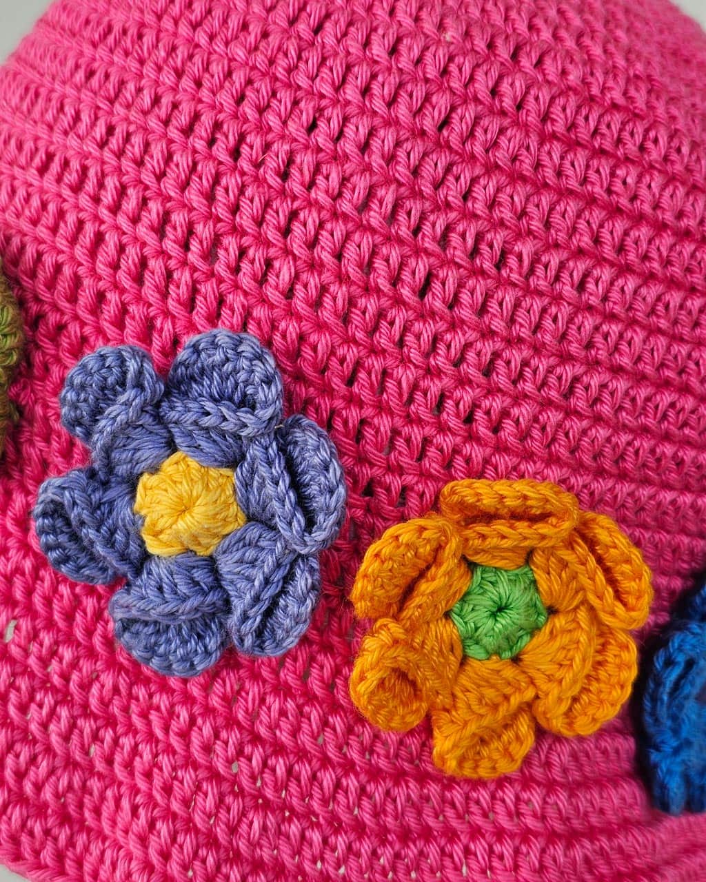 Hand crocheted with colorful flowers