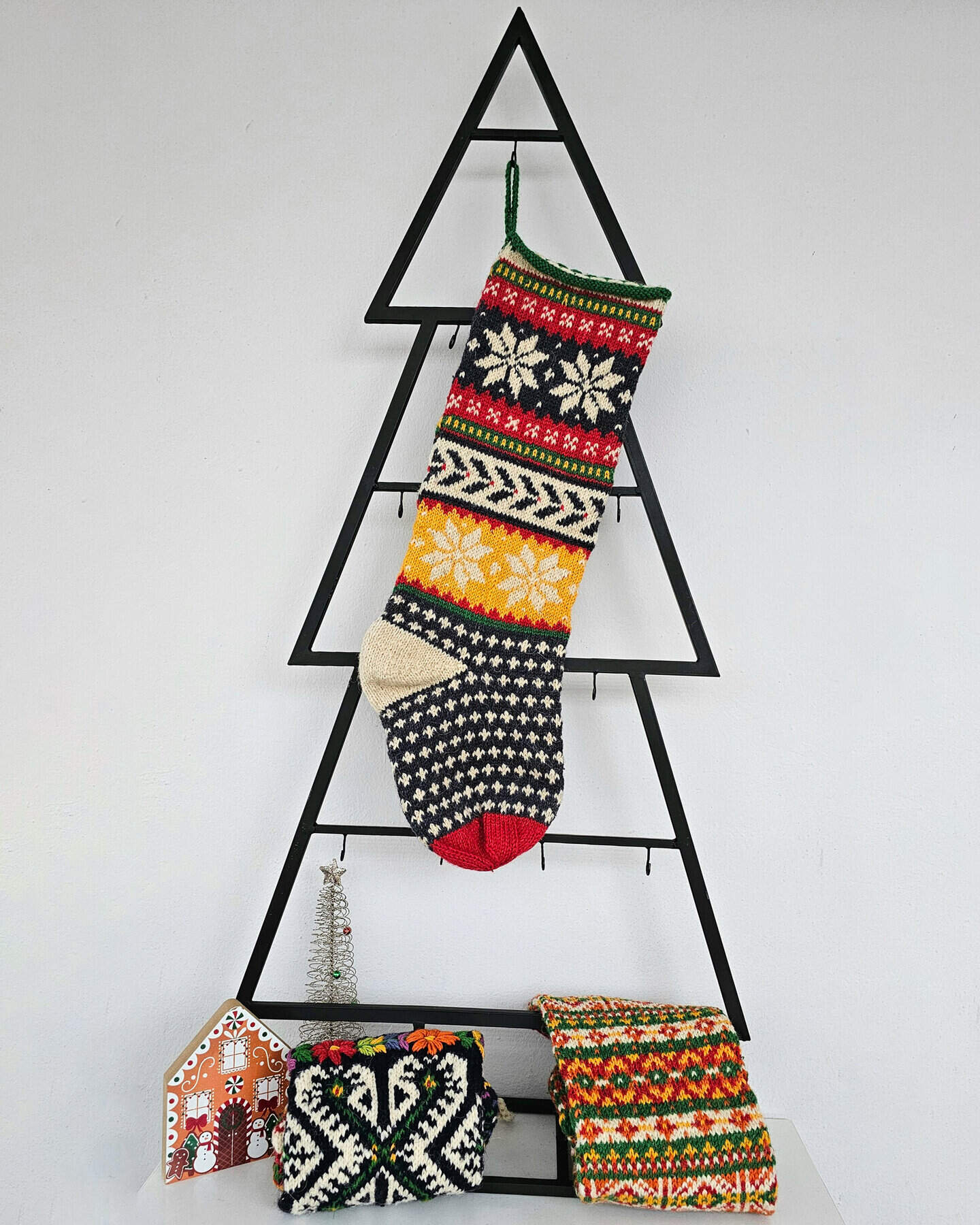 Invite classic, handmade elegance into your home with our Handmade Christmas Stocking with Snowflakes. It beautifully showcases Nordic-inspired snowflake motifs, chevron stripes, as well as mini Fair Isle patterns in rich, festive tones. The design is beautifully rendered on both sides to offer visual delight from every angle. Moreover, each stocking is unique and crafted with care to become a cherished holiday tradition that lasts for many seasons.