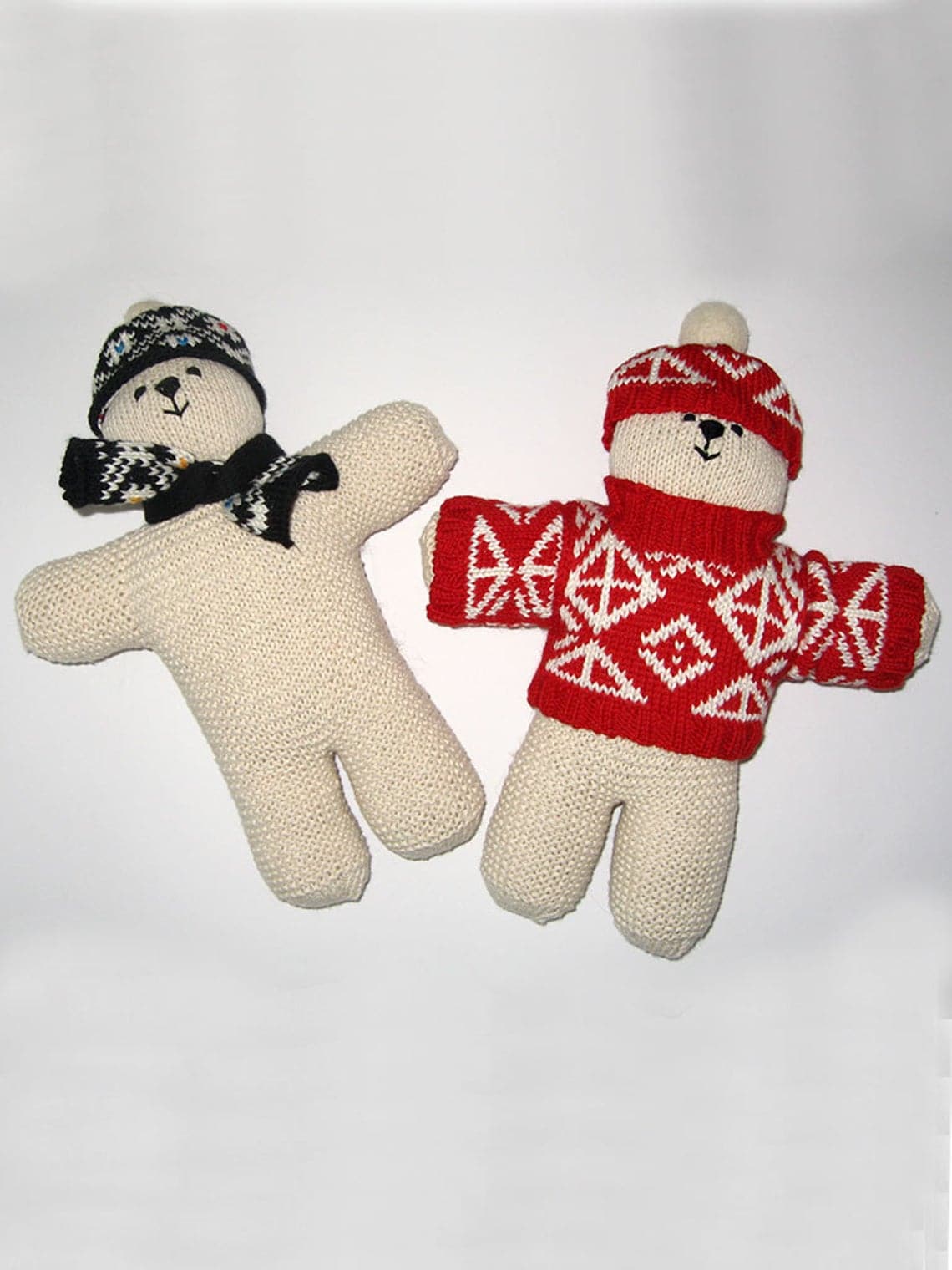 Knitted with wool yarn, filled with wool, washable, and irresistibly cute.