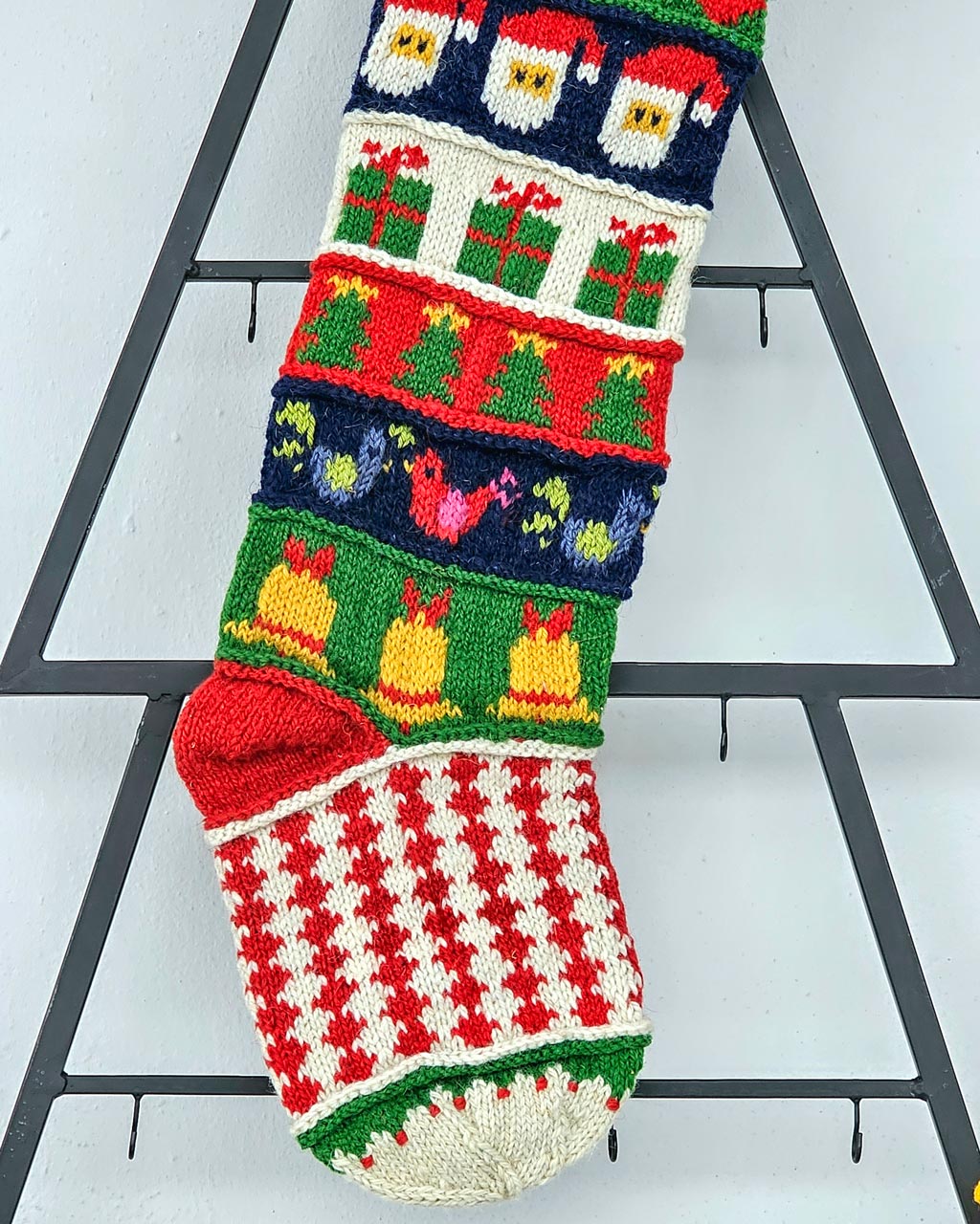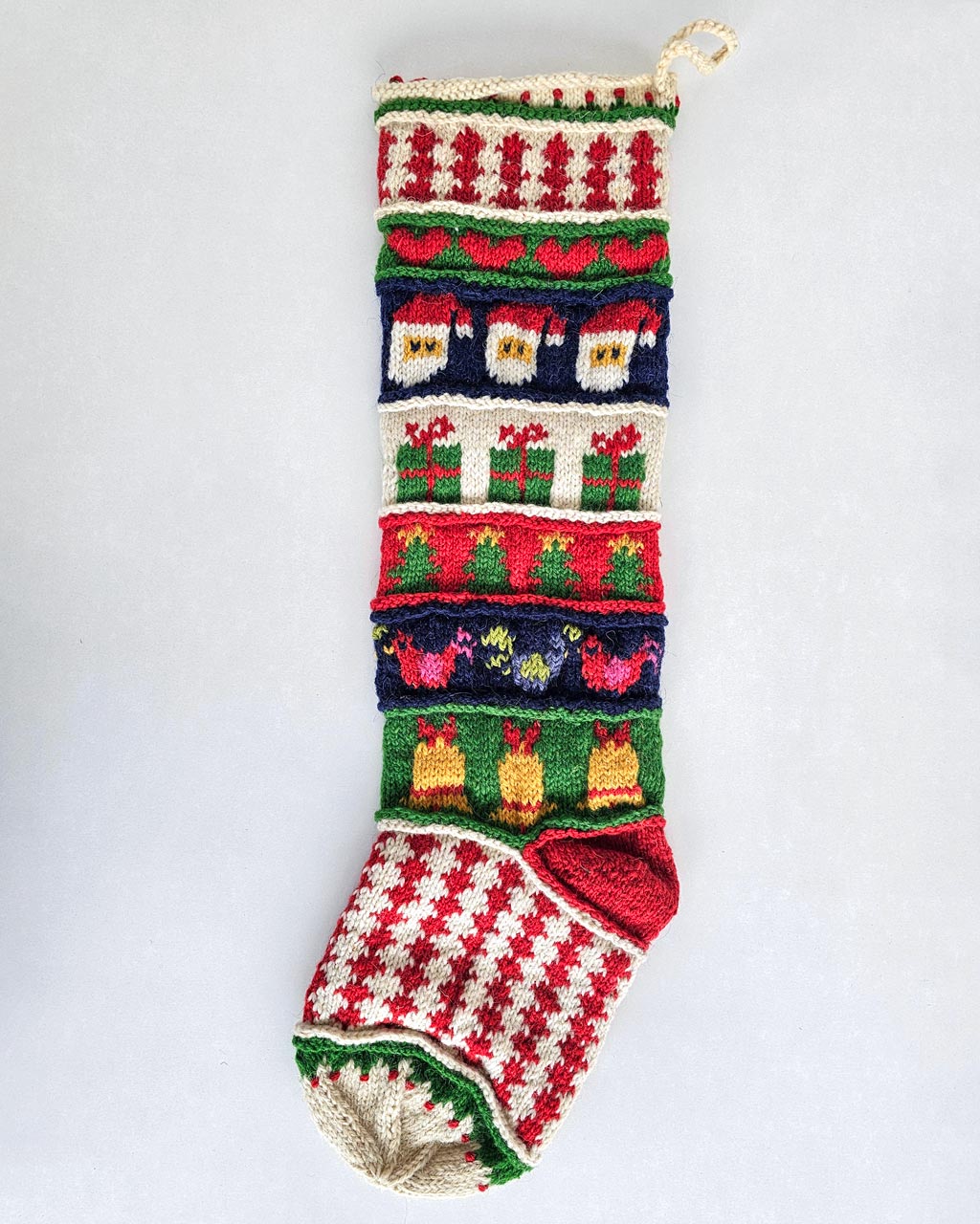 Traditional Christmas icons on a charming stocking. - Perfect Holiday Size: