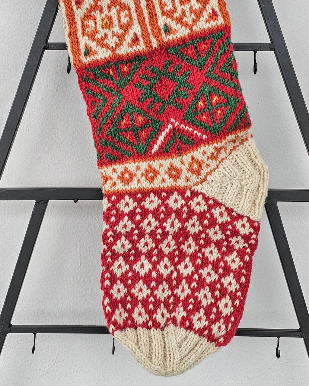 The woman named on the hang tag made this piece for you; therefore, each stitch shows her skill, patience, and care. Your purchase also helps her earn a fair income. You also receive a unique, well-made stocking for your home.