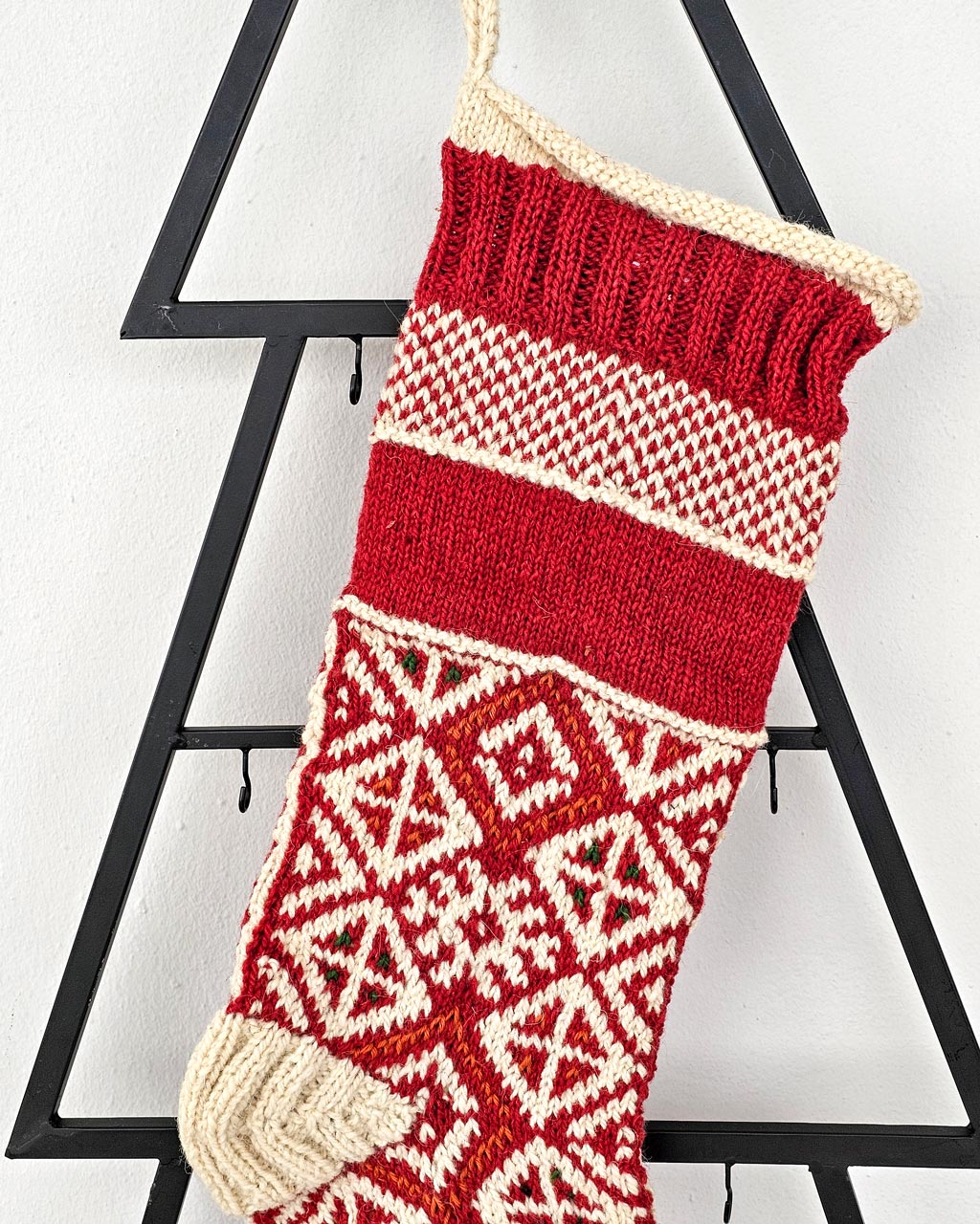 Add a festive flair to your fireplace or holiday décor with this elegant hand-knit red Christmas stocking, featuring iconic “neck of the sock” Bosnian motifs in red, white, and a touch of green. Lovingly created by BHcrafts artisans, it’s made to last long within your family.