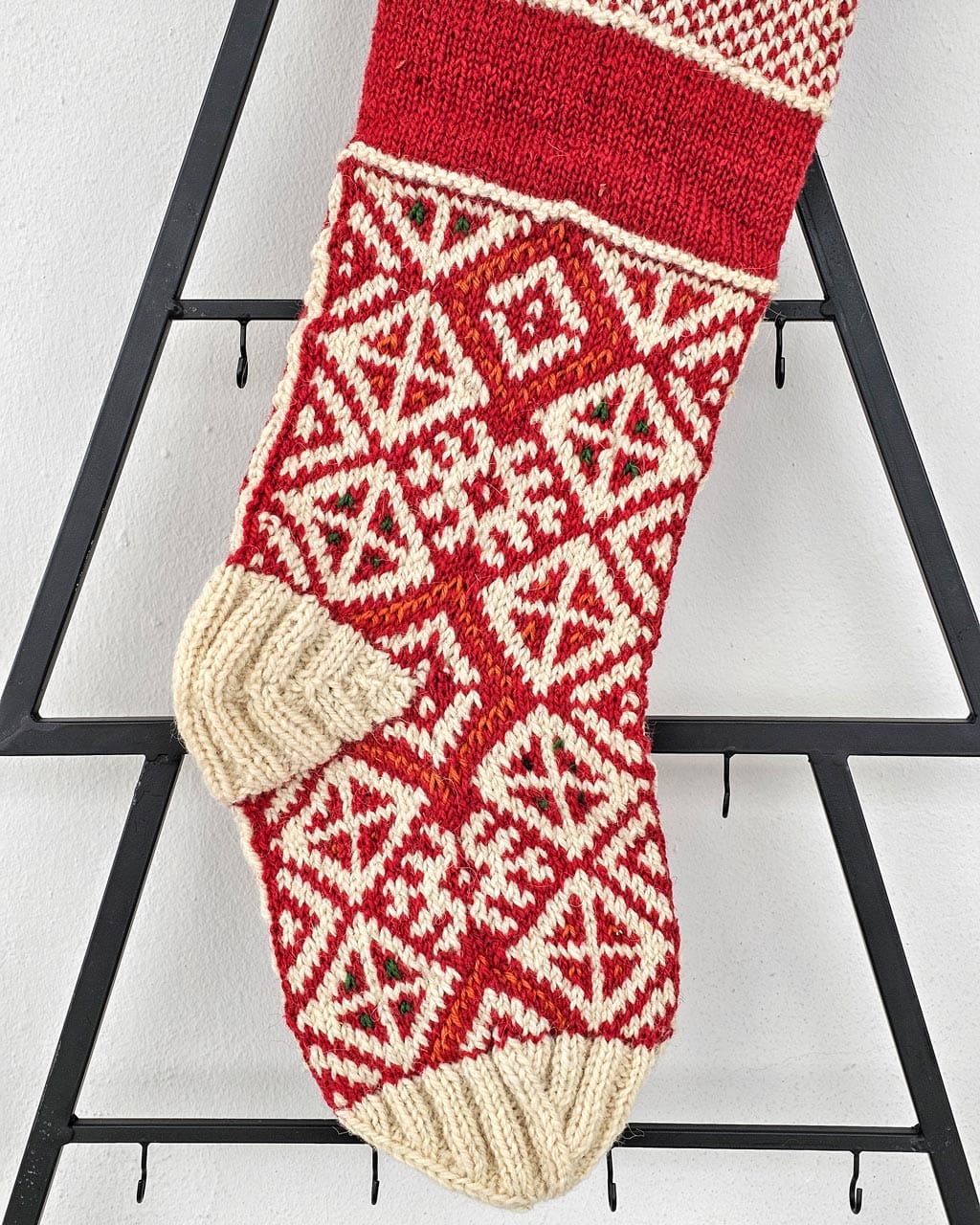 Hand-knitted red Christmas stocking (add custom name option) with traditional Bosnian pattern. Size: 23.60in x 7.00in (60cm x 18cm), Fair Trade as well as an eco-friendly product.