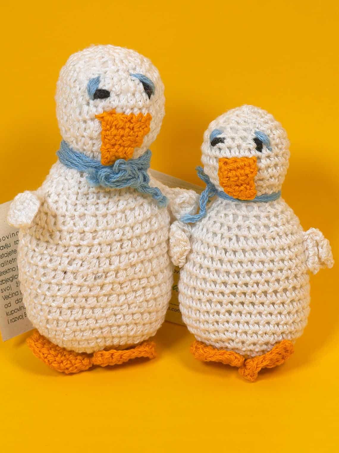 You don’t need a pond to have ducks. These 15 cm (5.9 inch) and 12.5cm (4.9 inch) cotton ducks can be a perfect addition to your home as an Easter decoration or a best friend for your child. They are filled with 100% chemically untreated wool and washable according to the instructions on the sewn-in label.